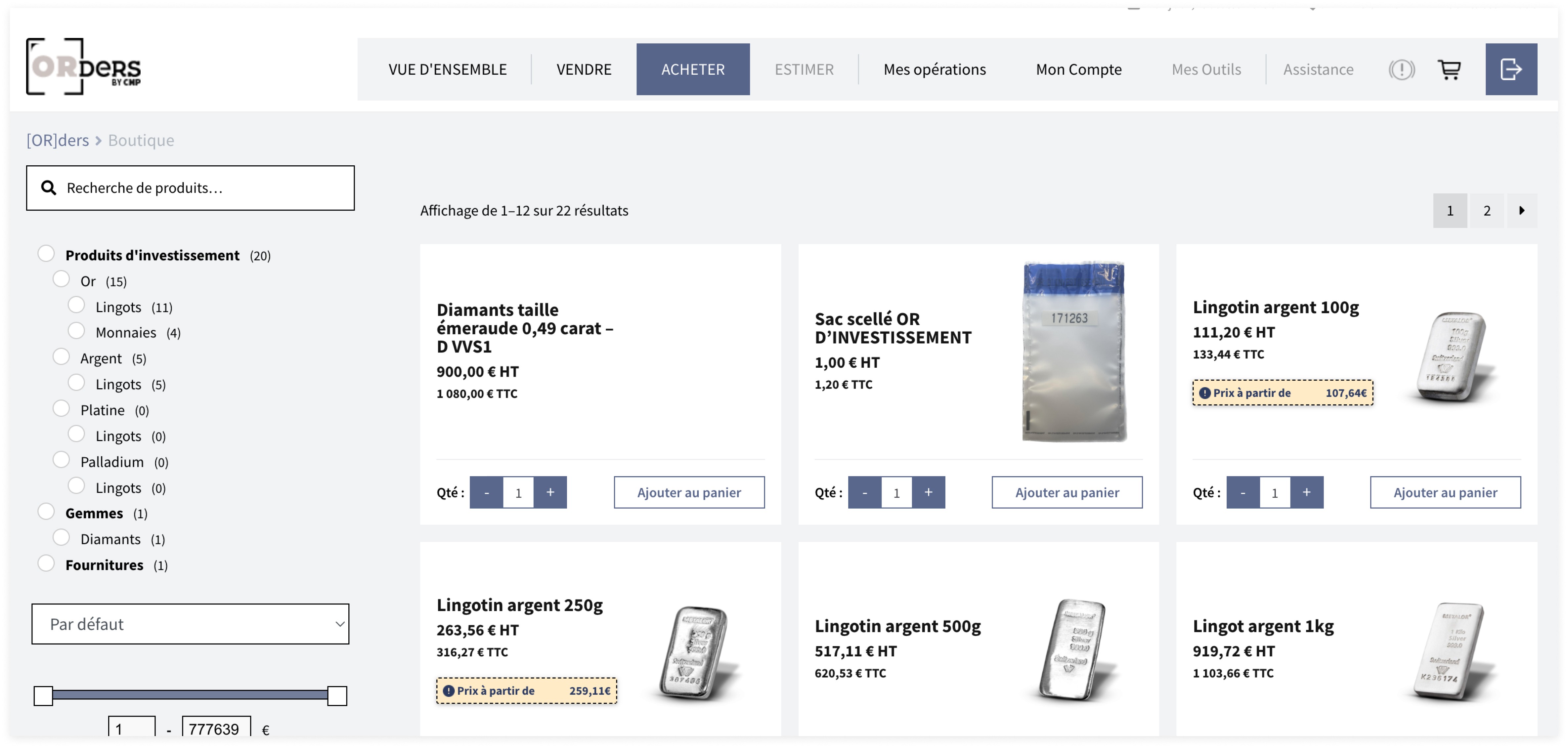 CMP is one of the top players in precious metal transactions, serving both B2B and B2C clients in France. Intending to step up their service game and become a market leader, they need a new website that provides a seamless shopping experience and competitive prices in seconds. They also place a high demand on transferring their accounts and orders management from Microsoft Office to Wordpress for efficient internal process with increasing data.